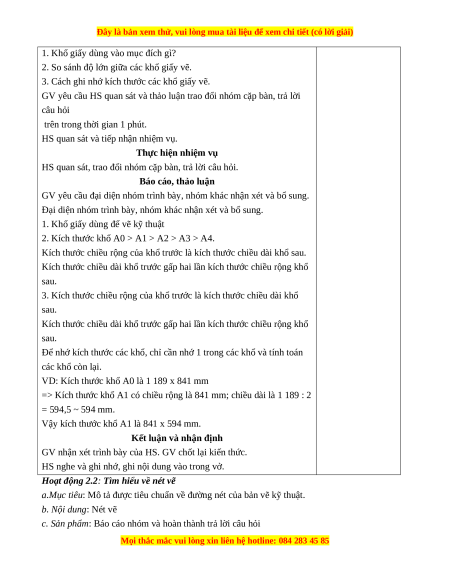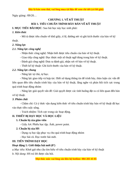 Giáo án Bài 1 Công nghệ 8 Cánh diều: Tiêu chuẩn trình bày bản vẽ kĩ thuật