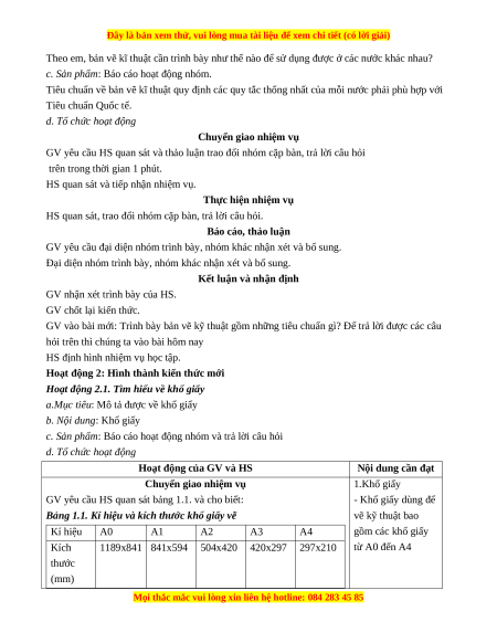 Hoạt động 2.1. Tìm hiểu về khổ giấy