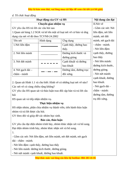 a.Mục tiêu: Mô tả được tiêu chuẩn về đường nét của bản vẽ kỹ thuật.