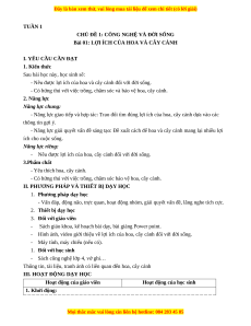 Bài 01: LỢI ÍCH CỦA HOA VÀ CÂY CẢNH I. YÊU CẦU CẦN ĐẠT 1. Kiến thức