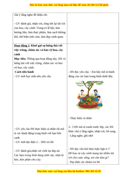 Bài 1: Lợi ích của hoa và cây cảnh