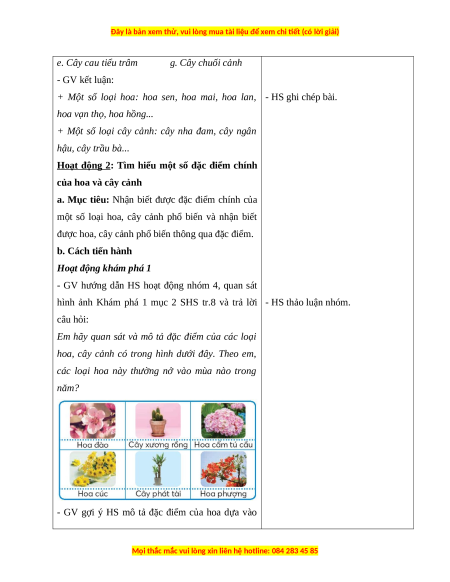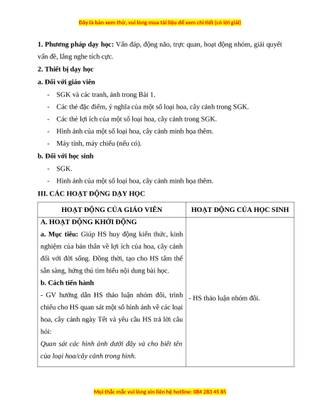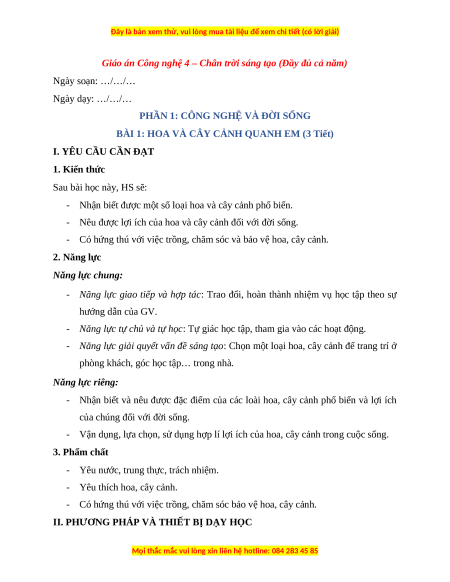 BÀI 1: HOA VÀ CÂY CẢNH QUANH EM (3 Tiết)