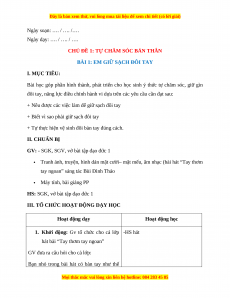 BÀI 1: EM GIỮ SẠCH ĐÔI TAY I. MỤC TIÊU:
