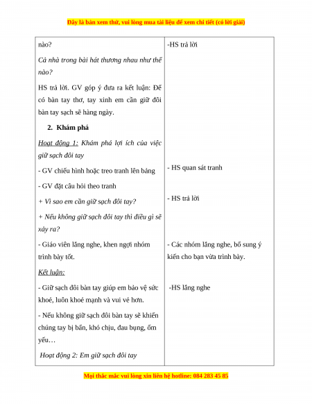 Hoạt động 1: Khám phá lợi ích của việc giữ sạch đôi tay