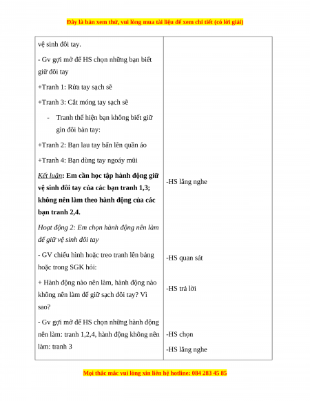 Hoạt động 2: Em luôn giữ đôi tay sạch sẽ