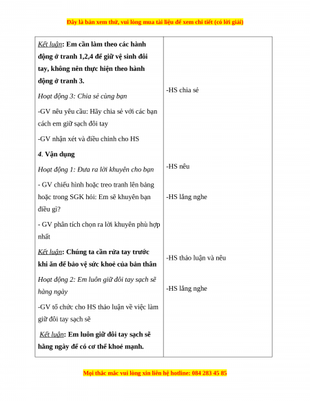 - Giữ sạch đôi bàn tay giúp em bảo vệ sức