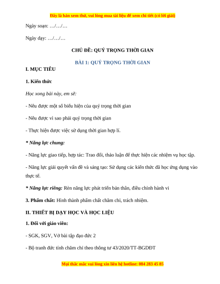 BÀI 1: QUÝ TRỌNG THỜI GIAN I. MỤC TIÊU 1. Kiến thức