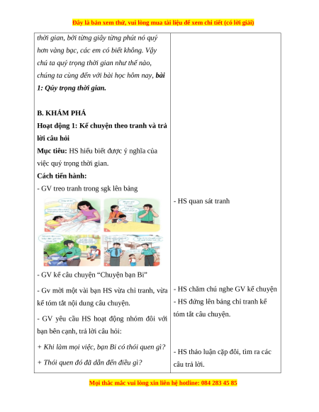 1: Qúy trọng thời gian. B. KHÁM PHÁ