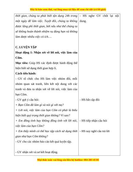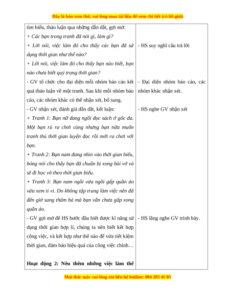 hiện biết quý trọng thời gian. Cách tiến hành:
