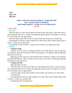 PHÁT TRIỂN KINH TẾ - XÃ HỘI CỦA CÁC NHÓM NƯỚC (02 tiết) I. MỤC TIÊU 1. Kiến thức