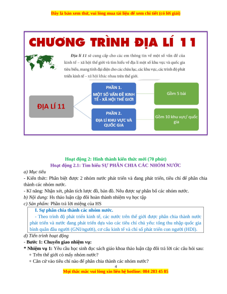 Hoạt động 2.1: Tìm hiểu SỰ PHÂN CHIA CÁC NHÓM NƯỚC a) Mục tiêu