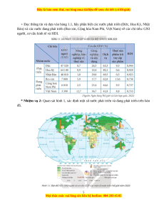 + Trình bày được sự khác biệt về kinh tế và một số khía cạnh xã hội của các nhóm nước. - Tìm hiểu địa lí: