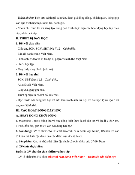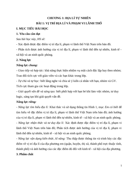 Giáo án Bài 1 Địa lí 12 Cánh diều (2024): Vị trí địa lí và phạm vi lãnh thổ