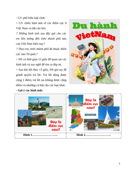 - GV tổ chức cho HS chơi trò chơi “Du hành Việt Nam” – Đoán tên các điểm cực 2