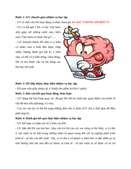 Bước 1: GV chuyển giao nhiệm vụ học tập lãnh thổ