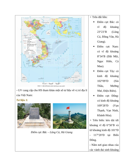 Giáo án Bài 1 Địa lí 12 Kết nối tri thức (2024): Vị trí địa lí và phạm vi lãnh thổ