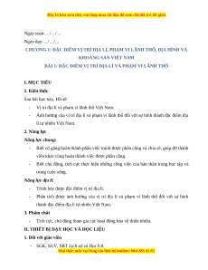 BÀI 1: ĐẶC ĐIỂM VỊ TRÍ ĐỊA LÍ VÀ PHẠM VI LÃNH THỔ I. MỤC TIÊU 1. Kiến thức Sau bài học này, HS sẽ: -