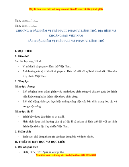 Bộ giáo án Địa lí 8 Chân trời sáng tạo đã cập nhật đủ Cả năm.