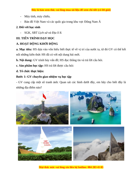 Giáo án Bài 1 Địa lí 8 Chân trời sáng tạo (2024): Đặc điểm vị trí địa lí và phạm vi lãnh thổ