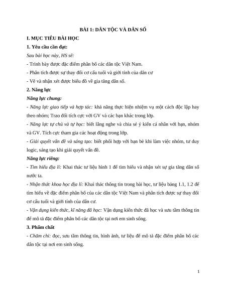BÀI 1: DÂN TỘC VÀ DÂN SỐ