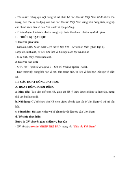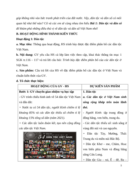 Giáo án Bài 1 Địa lí 9 Kết nối tri thức (2024): Dân tộc và dân số