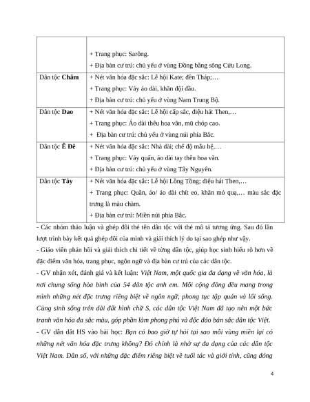để mô tả đặc điểm phân bố các dân tộc tại nơi em sinh sống. 3. Phẩm chất