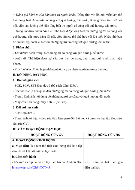 - GV mời cả lớp hát và vỗ tay theo bài hát Nhớ ơn Bác - HS xem và hát theo giai https://youtu.be/Gh6-fD0Tyi8 điệu bài hát. 2