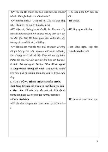 - GV yêu cầu HS quan sát tranh minh họa SGK tr.5 – 6 3 - HS lắng nghe GV nêu câu hỏi.