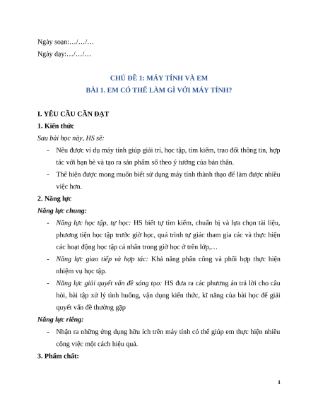 BÀI 1. EM CÓ THỂ LÀM GÌ VỚI MÁY TÍNH?