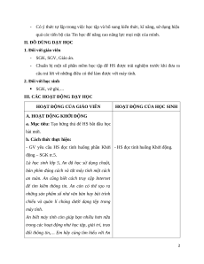 trình chiếu,… Sau đó, GV nêu câu hỏi gợi mở dịch bệnh Covid.