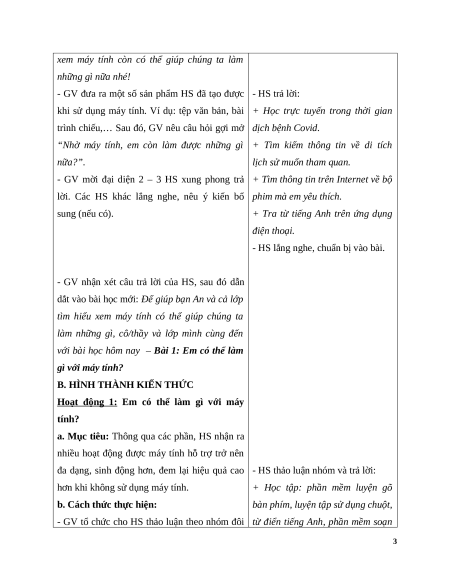 Hoạt động 1: Em có thể làm gì với máy tính?
