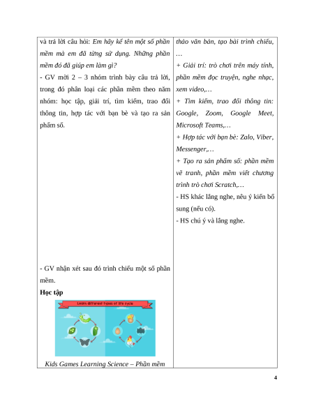 - GV mời 2 – 3 nhóm trình bày câu trả lời, phần mềm đọc truyện, nghe nhạc,