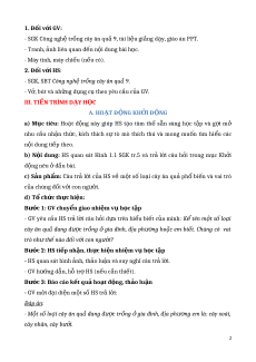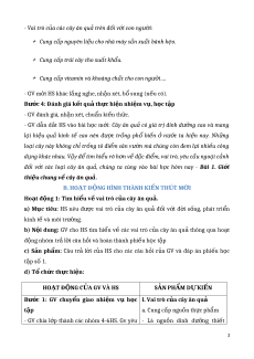 ượ khả năng và sở thích c a ủ b n ả thân v i ớ m t ộ số ngành ngh ề liên quan. 3. Ph m ch ẩ t ấ - Có ý th c trân tr ứ ng các s ọ n ph ả m cây ăn qu ẩ . ả - Có ý th c tr ứ ng, chăm sóc cây ăn qu ồ ả gia đình, đ ở a ph ị ng. ươ II. THI T B Ế D Ị Y H Ạ C VÀ H Ọ C LI Ọ U Ệ 1 1. Đ i v ố i GV: ớ - SGK Công ngh tr ệ ng cây ăn qu ồ 9, tài li ả u gi ệ ng d ả y, giáo án PPT. ạ - Tranh, nh liên quan đ ả n n ế i dung bài h ộ c. ọ - Máy tính, máy chi u (n ế u có). ế 2. Đ i v ố i HS ớ : - SGK, SBT Công ngh tr ệ ng cây ăn qu ồ 9 ả . - V , bút và nh ở ng d ữ ng c ụ theo yêu c ụ u c ầ a GV. ủ III. TI N TRÌNH D Ế Y H Ạ C Ọ A. HO T Đ Ạ NG KH Ộ I Đ Ở NG Ộ a) M c ụ tiêu: Ho t ạ đ ng ộ này giúp HS t o ạ tâm thế s n ẵ sàng h c ọ t p ậ và g i ợ mở nhu c u ầ nh n ậ th c,