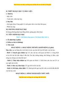 - Bước 1: Chuyển giao nhiệm vụ: GV yêu cầu học sinh quan sát Hình 1.1 trong SGK