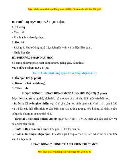 Tiết 1. Giới thiệu tổng quan về kĩ thuật điện (tiết 1)