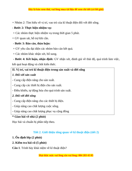 Tiết 2. Giới thiệu tổng quan về kĩ thuật điện (tiết 2)