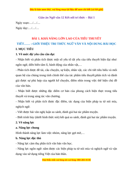 Bộ giáo án Ngữ Văn 12 Kết nối tri thức được cập nhật liên tục trong gói này từ nay đến hết tháng 3/2025.
