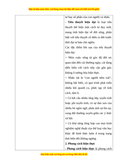 - Nhận biết và phân tích được một số yếu tố tất yếu của tiểu thuyết hiện đại như: