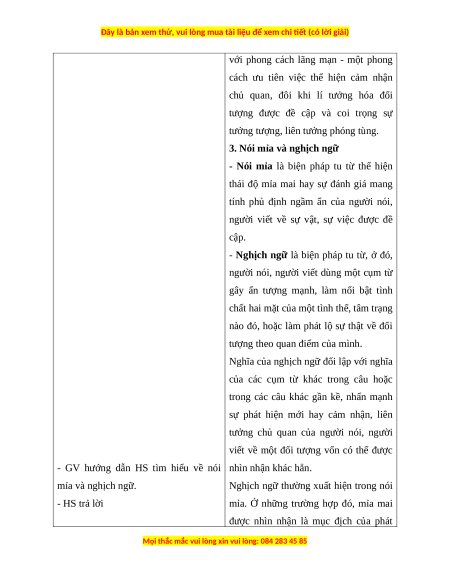 - Nhận biết và phân tích được đặc điểm, tác dụng của biện pháp tu từ nói mỉa, nghịch ngữ.