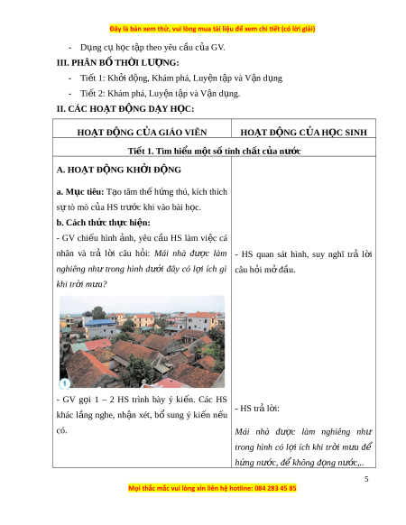Giáo án Bài 1 Khoa học lớp 4 (Cánh diều): Tính chất và vai trò của nước