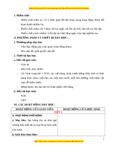 II. PHƯƠNG PHÁP VÀ THI T Ế BỊ DẠY H C Ọ : 1. Phư ng ơ pháp d y ạ h c ọ - Vấn đáp, đ n ộ g não, tr c ự quan, ho t ạ đ n ộ g nhóm. - Nêu v n ấ đ , ề gi i ả quy t ế v n ấ đ . ề 2. Thi t ế b ị d y ạ h c ọ a. Đ i ố v i ớ giáo viên: - Giáo án. - Máy tính, máy chi u ế .
