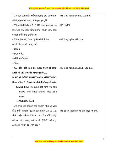 Giáo án Bài 1 Khoa học lớp 4 (Chân trời sáng tạo): Một số tính chất và vai trò của nước