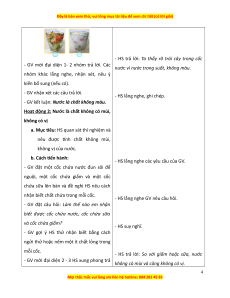 ự tế ở gia đình và đ a ị ph n ươ g v : ề n ứ g d n ụ g m t ộ số tính ch t ấ c a ủ n c; ướ vai trò c a ủ n c ướ trong đ i ờ s n ố g, s n ả xu t ấ và sinh ho t ạ . 2. Năng l c ự : Năng l c ự chung: - Năng l c ự tự ch , ủ tự h c: ọ Chủ đ n ộ g h c ọ t p ậ , tìm hi u ể n i ộ dung bài h c, ọ bi t ế l n ắ g nghe và tr ả l i ờ n i ộ dung trong bài h c. ọ - Năng l c ự gi i ả quy t ế v n ấ đề và sáng t o