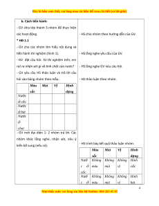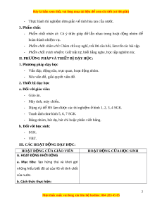 II. PHƯƠNG PHÁP VÀ THI T Ế BỊ DẠY H C Ọ : 1. Phư ng ơ pháp d y ạ h c ọ - Vấn đáp, đ n ộ g não, tr c ự quan, ho t ạ đ n ộ g nhóm. - Nêu v n ấ đ , ề gi i ả quy t ế v n ấ đ . ề 2. Thi t ế b ị d y ạ h c ọ a. Đ i ố v i ớ giáo viên: - Giáo án. - Máy tính, máy chi u ế . - D n ụ g c ụ đ ể HS làm đ c ượ các thí nghi m ệ ở hình 1, 2, 3, 4 SGK. - Tranh n ả h nh ư hình 5, 6, 7 SGK. - B n ả g nhóm, bút d , ạ bút chì ho c ặ ph n ấ vi t ế b n ả g. b. Đ i ố v i ớ h c ọ sinh: - SGK. - VBT. III. CÁC HO T Ạ Đ N Ộ G D Y Ạ H C Ọ : HOẠT ĐỘNG C A Ủ GIÁO VIÊN HO T Ạ ĐỘNG C A Ủ H C Ọ SINH