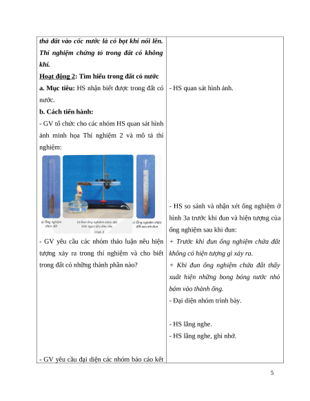 trong đất các em thực hiện các hoạt động tiếp theo.