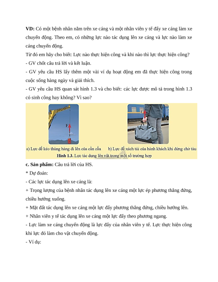 - GV lấy ví dụ để HS phán đoán trường hợp nào thì lực thực hiện công cơ học.