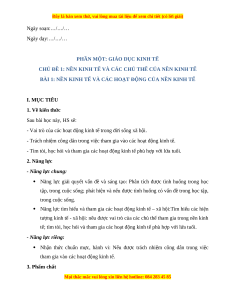 kinh tế. Chúng ta sẽ cùng đi tìm hiểu trong bài học ngày hôm nay – Bài 1: Nền kinh