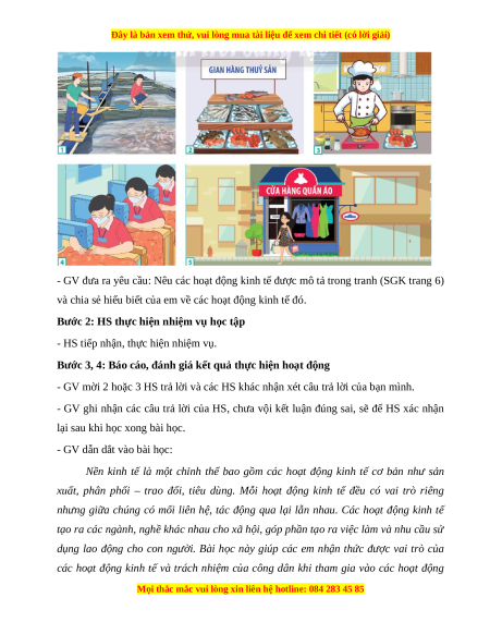 - GV đưa ra yêu cầu: Nêu các hoạt động kinh tế được mô tả trong tranh (SGK trang 6)