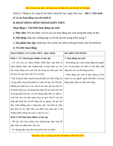 HOẠT ĐỘNG CỦA GIÁO VIÊN - HỌC SINH DỰ KIẾN SẢN PHẨM