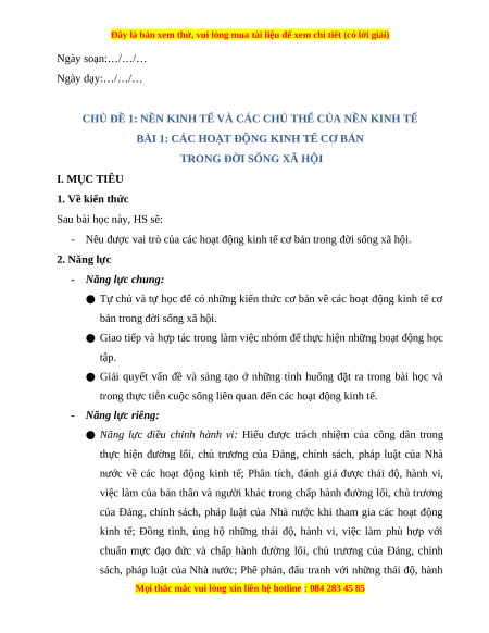 Giáo án Bài 1 KTPL 10 Kết nối tri thức: Các hoạt động kinh tế cơ bản trong đời sống xã hội